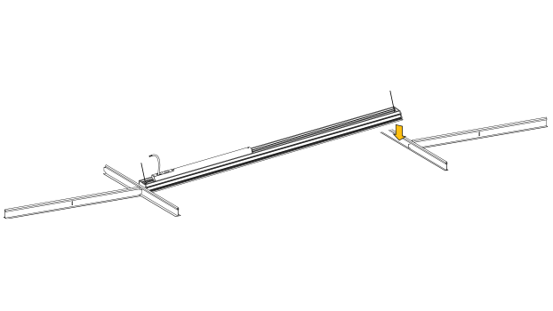 Once the grid structure has been installed, engage the GRIDHybrid6 fixture into the desired location. Insert one end of the fixture at an angle and then the opposite end.